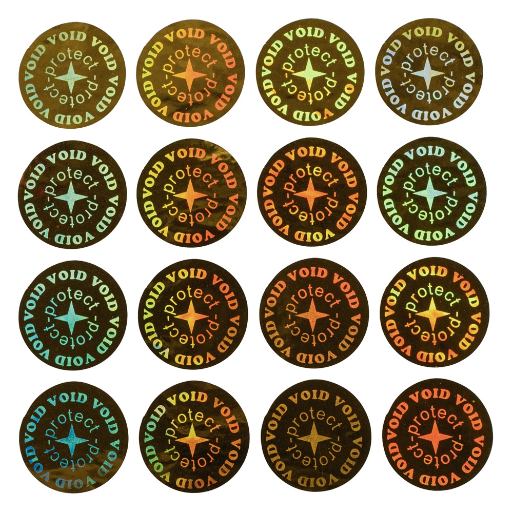 Ein Hologramm in der goldenen Farbe für die Versicherung von zerlegbaren Teilen der Produkte gegen die verbotene Manipulation, Umklebung von Kalibrationsmechanismen usw. Auf dem Umfang steht 6x das Wort VOID, in der Mitte ist ein vierzackiger Stern und daneben steht 2x das Wort „protect“.